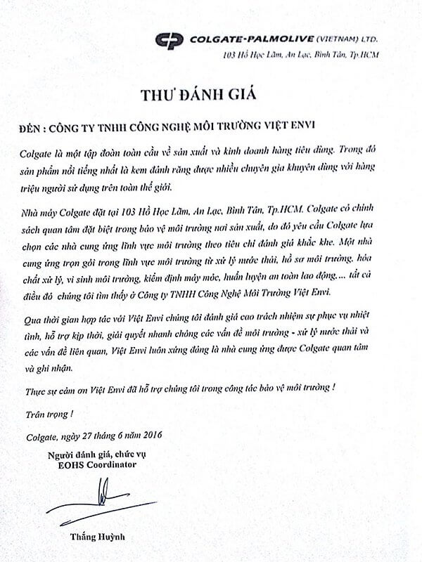 Chúng tôi tự hào là đối tác của nhiều tập đoàn lớn trong và ngoài nước như: Colgate, Rollroyce, Vinamilk, Tập đoàn thủy Sản Nam Việt, Park-Hyatt, TTG, Novaland, BW, P&G, KTG, Sonkimland, Central, Coteccons, Newteccons, Viteccons …trong lĩnh vực xử lý nước. Với dịch vụ đa dạng Việt Envi hướng đến là nhà thầu trọn gói trong lĩnh vực xử lý nước của dự án.