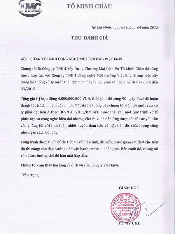 CÔNG TY TNHH CÔNG NGHỆ MÔI TRƯỜNG VIỆT ENVI